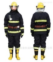 消防隔熱服,有時又稱為(消防防護服)主要是針對消防隊員或其它工作在高溫場所的作業人員提供隔(防)熱保護的服裝。 它一般是由阻燃纖維織物與真空鍍鋁膜的復合材料混合在一起而制作成的,消防隔熱服的特點:不含石棉,比重輕、強度高、阻燃、耐高溫、抗熱輻射、防水、耐磨、耐折、且對人體無害等,穿上該服裝能有效地保障消防隊員、高溫場所作業人員即使接近熱源也不會被酷熱、火焰、蒸氣而灼傷的一種保護服裝。目前國家已經關于該服裝出臺了一套《消防隔熱服性能要求及試驗方法》標準。